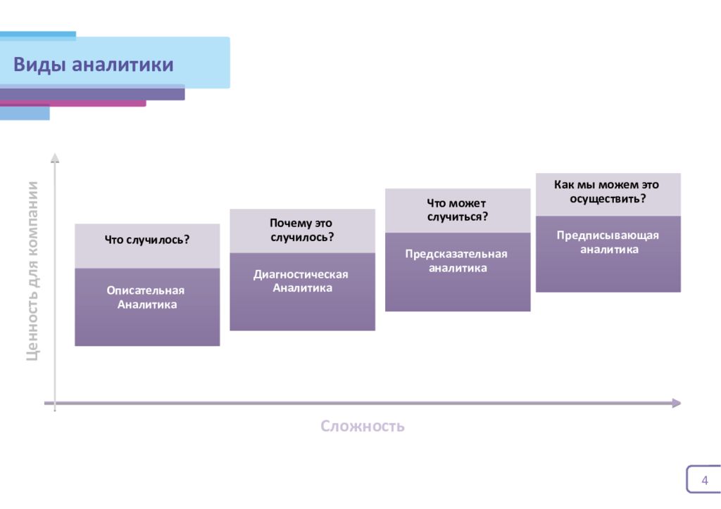 Таким образом, от описательной аналитики к прескриптивной растёт не только сложность методов, но и ценность выводов для бизнеса: от фиксации фактов — к обоснованным решениям, минимизирующим неопределённость и повышающим эффективность.